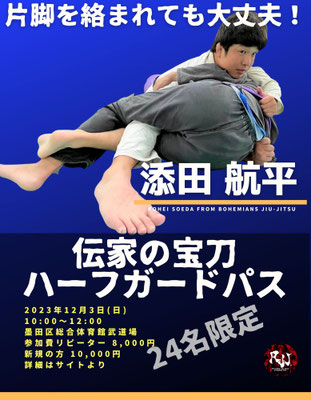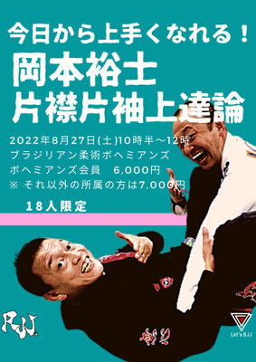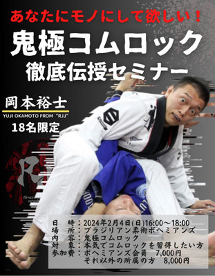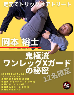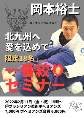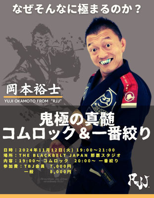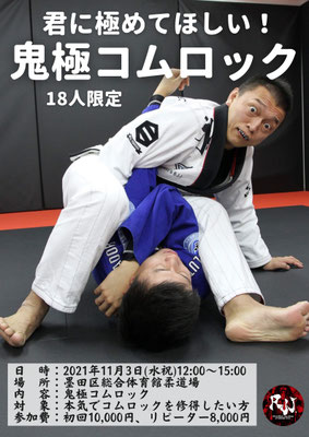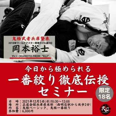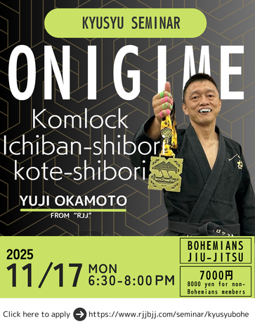 11/17(月) 18:30〜20:00 岡本裕士「鬼極三大武器徹底セミナー」@ブラジリアン柔術ボヘミアンズ